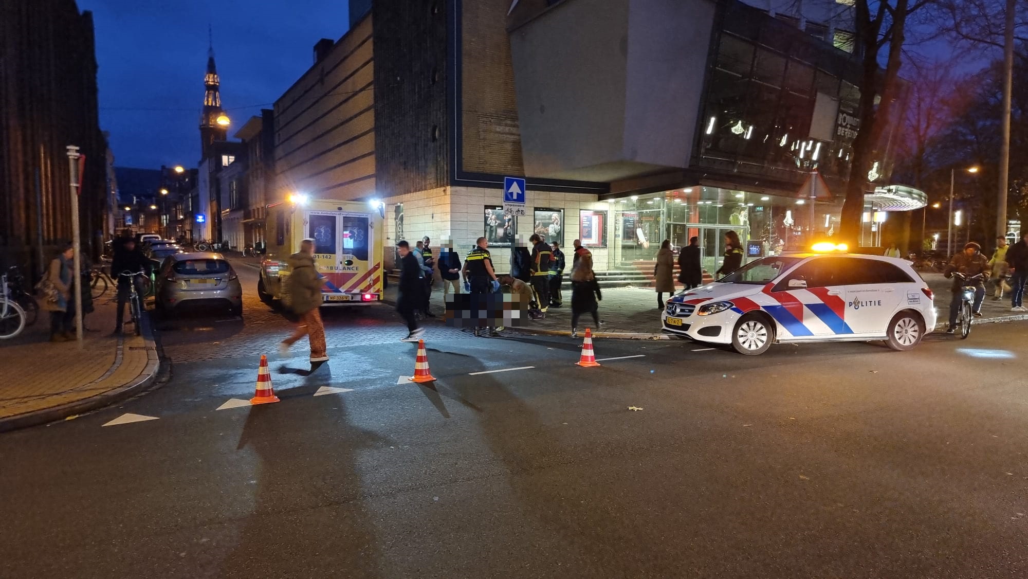 Bij een verkeersongeluk op de Herestraat, nabij de oude bioscoop, is dinsdag aan het einde van de middag een fietser gewond geraakt. Dat meldt nieuwsfotograaf Patrick Wind van 112groningen.nl.