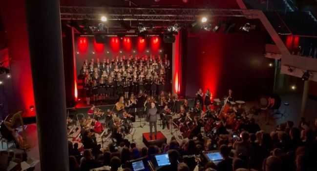 “Als je kijkt naar het aantal bezoekers dan hebben we de afgelopen dagen 1.100 mensen mogen verwelkomen. Bij het project zijn tweehonderd leerlingen en medewerkers betrokken. Ons koor bestaat uit ongeveer honderd leden. Het wordt georganiseerd door twee leraren van de muzieksectie: door Jasper Verkuil en door mij. En het is een ontzettend leuk feest om samen met elkaar te mogen organiseren.”