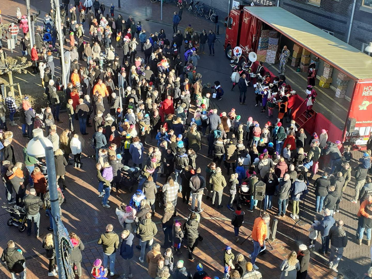 “Sinterklaas kwam met de boot naar Ten Boer. Het ging dus echt om de laatste etappe. En eigenlijk bleek de oplossing simpel: we hebben de boot op een aanhangwagen gezet, en op die manier zijn de Goedheiligman en de Pieten naar het Koopmansplein gebracht. Daar stond een podium waar toespraken plaatsvonden en waar er veel gezongen werd.”