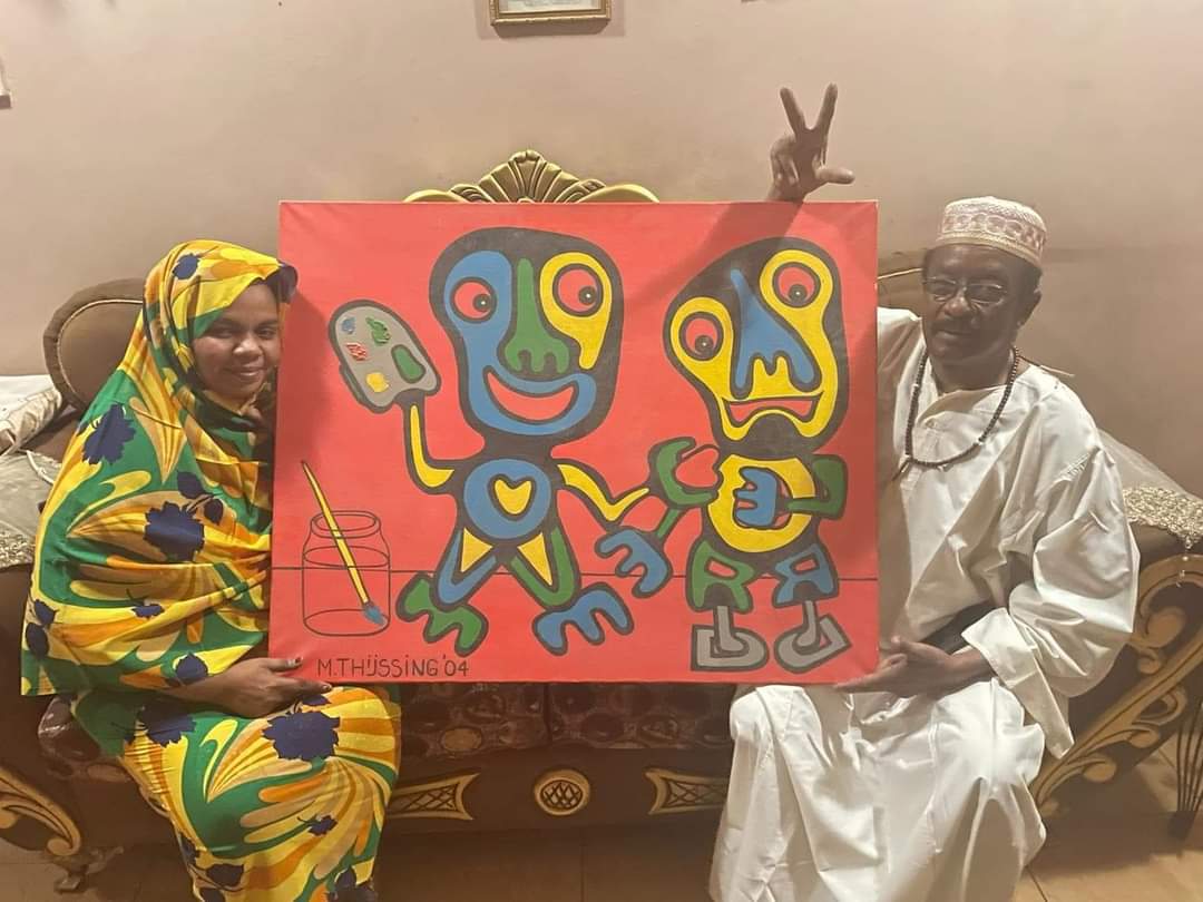 “Dat is te danken aan Marga, zij is de moeder van Miranda waar het schilderij in 2006 is terechtgekomen. Miranda is getrouwd met een Soedanese man, Aladin. Sinds het schilderij in 2007 in Soedan gekomen is zij degene die het project bewaakt in Sudan. Aladin’s moeder is meer dan een maand geleden overleden en hij moest naar naar de Soedanese hoofdstad Khartoem om daar zaken te regelen na het overlijden. Tijdens deze reis heeft Aladin het schilderij naar zijn zus gebracht. Daarop is het kunstwerk weer aan een reis begonnen. Ik kreeg daarop een berichtje van Marga met dit nieuws, en ik kon het niet geloven. Mijn ogen vielen zowat uit mijn hoofd. Het bericht van het overlijden van de schoonmoeder van Miranda viel samen met het overlijden van mijn eigen schoonmoeder. Een bizar toeval. Het schilderij had dus ook op mezelf een helende werking.”