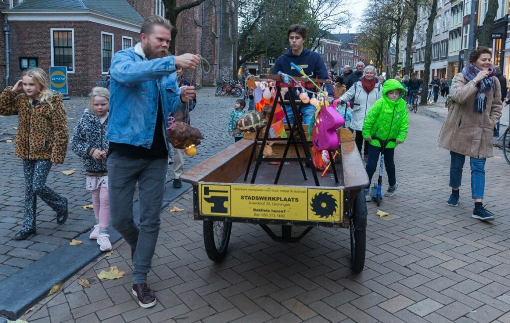 De kinderen maakten de lampionnen de afgelopen dagen met de voederbieten die de Koninklijke Vereeniging voor Volksvermaken de afgelopen dagen uitdeelde. Een jury, onder leiding van kinderburgemeester Fatoumata en loco-kinderburgemeester Finn, ging aan de slag met de beoordeling van de zelfgemaakte lampionnen. De kinderen en hun ouders luisterden ondertussen naar het verhaal van Sint Martinus (onder orgelbegeleiding verteld door Frank Belt) en luisterden naar muziek van het Groninger Kinder- en Jeugdkoor. Ook konden de kinderen op de foto met Sint Martinus en zijn soldaten.