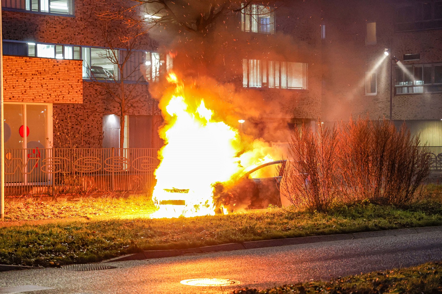 De bestuurder kon de auto stilzetten en op tijd verlaten. Bij aankomst van de brandweer stond het voertuig al volledig in brand.