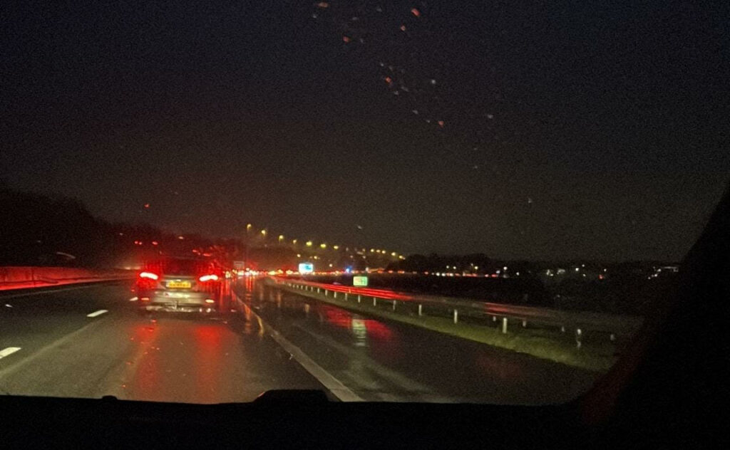 Door het natte wegdek is rond 16.50 uur een eenzijdig ongeluk gebeurd. De politie schrijft op instagram dat de auto van een jongeman omgekeerd op de weg belandde door aquaplanning.