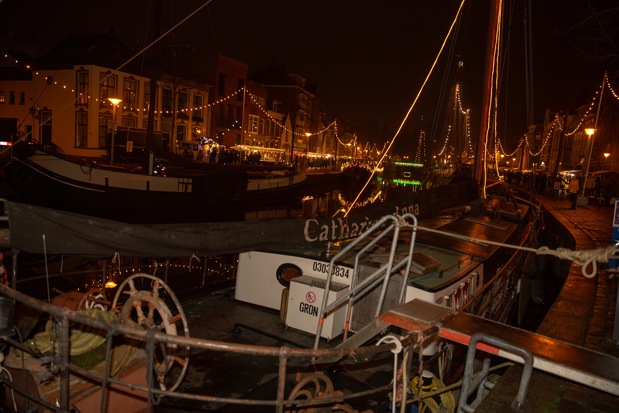 Diverse sfeervol verlichte historische schepen liggen aan de kades van de Hoge, Lage en Kleine der A. Niet alleen aan boord van de schepen, maar ook in Museum aan de A en in de Akerk is er van alles te doen.