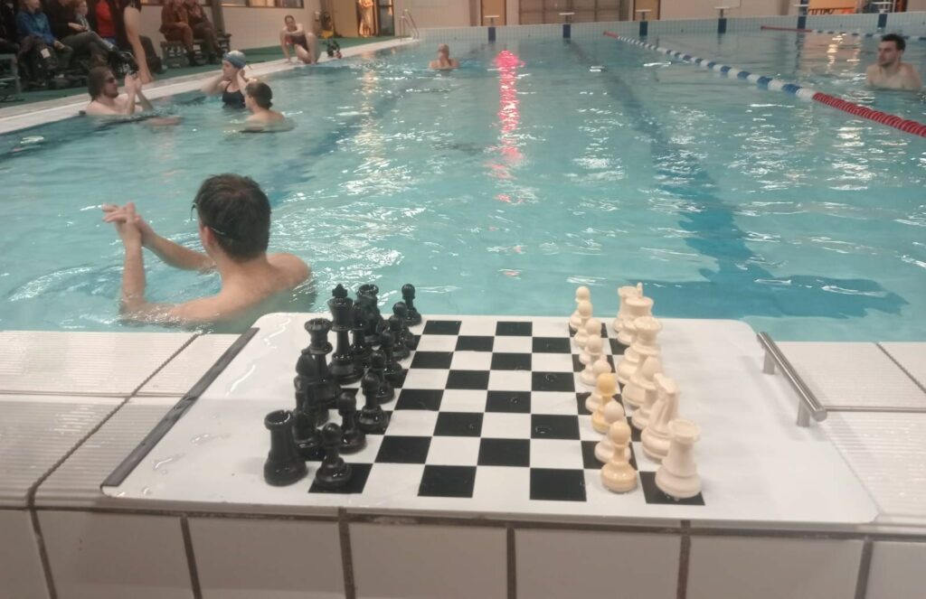 Naast het NK Schaken in de categorieën algemeen en vrouwen vindt donderdagavond nog een schaakkampioenschap plaats in Groningen. In het zwembad van het Willem Alexander Sportcentrum werd gestreden om het eerste Nederlands Kampioenschap Onderwaterschaken.