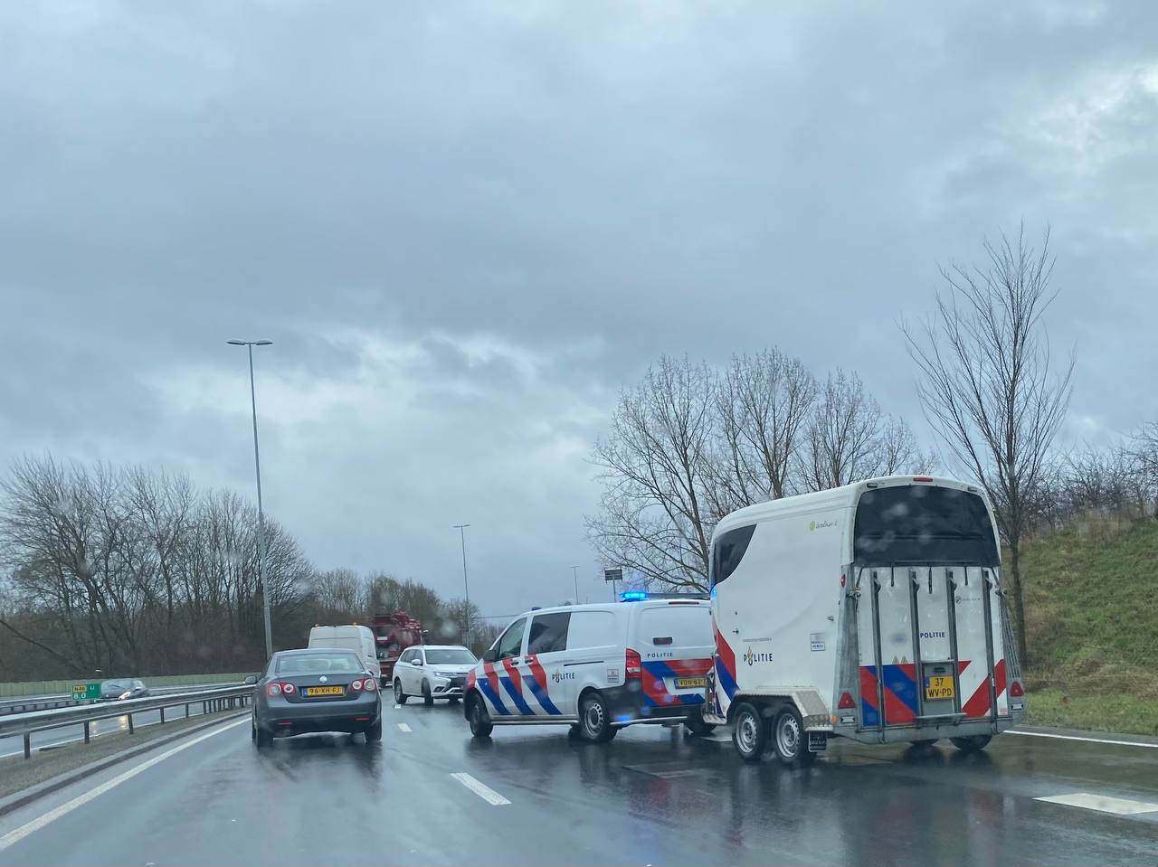 De agenten van een toevallig passerende politiebus met paardentrailer verleenden de eerste assistentie bij het ongeval.