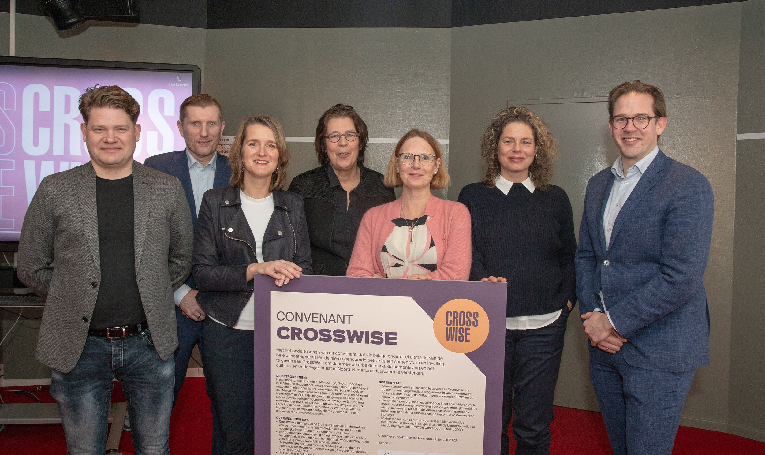 De vier onderwijsinstellingen, de gemeente en de organisatie achter De Oosterpoort en de Stadsschouwburg zetten maandagmiddag hun handtekening onder een samenwerkingsverband in de ‘oude Oosterpoort, onder de noemer ‘CrossWise’. Binnen CrossWise willen de organisaties samen optrekken bij het opleiden van MBO- en HBO-studenten voor de noordelijke cultuur- en evenementensector: van kok tot podiumtechnicus, van beveiliger tot promotiemedewerker. Het moet een tweeledige samenwerking gaan worden, waarbij ook de medewerkers van SPOT van de studenten kunnen leren over de nieuwste ontwikkelingen. Voor studenten moet de opleiding binnen SPOT ook gaan gelden als ‘kwaliteitslabel’ voor de studenten, zodat ze een streepje voor hebben op de arbeidsmarkt.