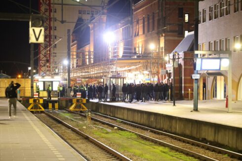 Supporters van FC Groningen zijn zondagavond op het Hoofdstation opgevangen door een grote politiemacht. Eerder op de avond had de groep vernielingen aangericht in een trein tussen Utrecht en Zwolle.