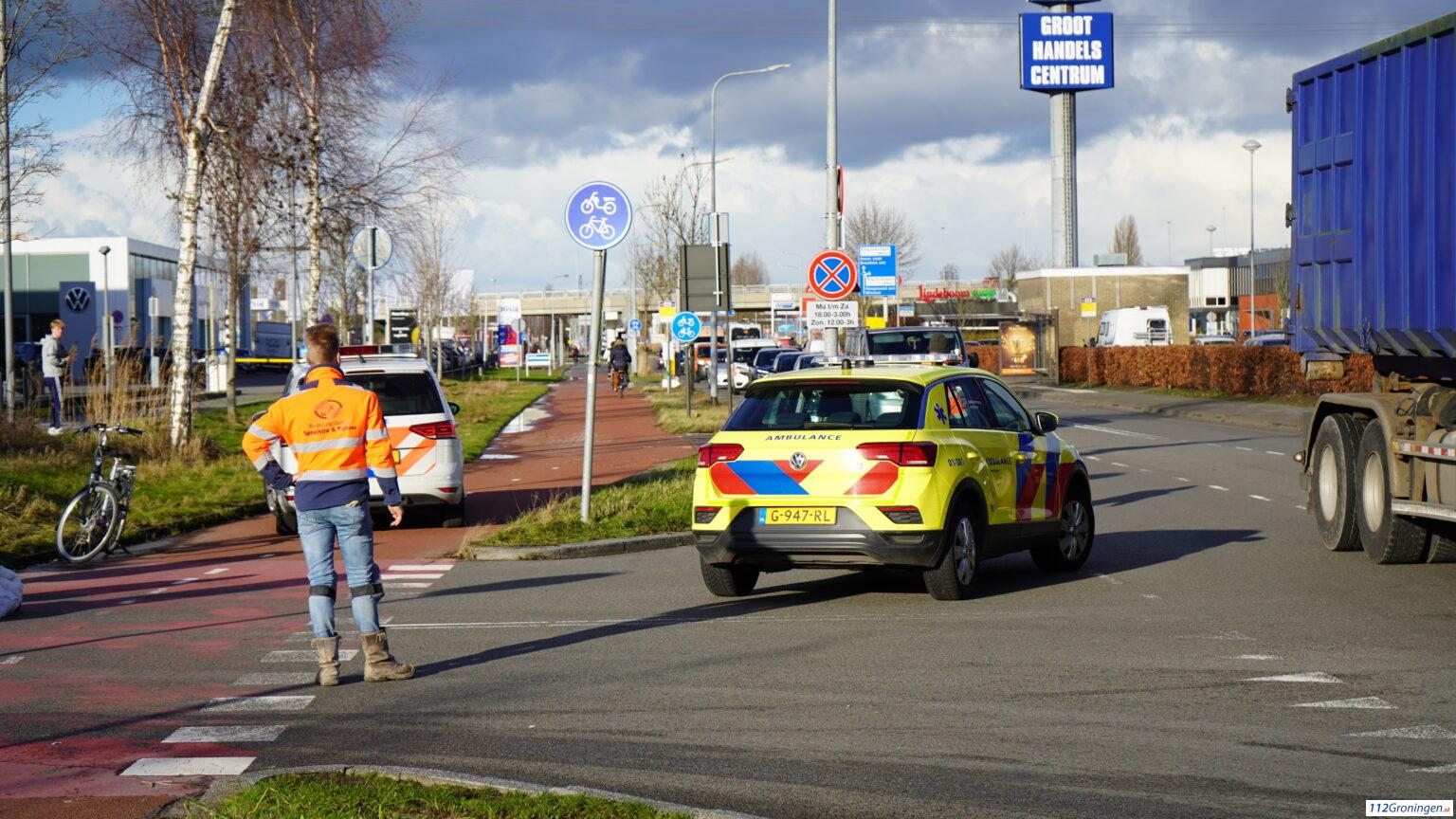 De fietser kwam in botsing met een auto. Het slachtoffer is per ambulance naar het ziekenhuis gebracht.