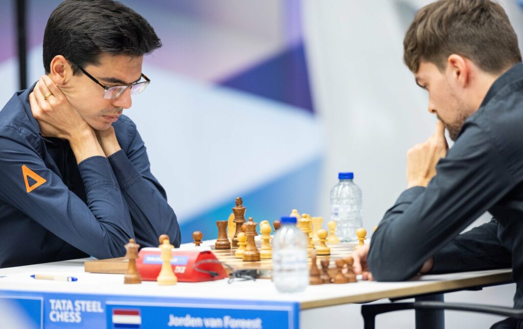 Jorden van Foreest speelde zaterdag remise tegen zijn landgenoot Anish Giri in de 12e ronde van Tata Steel Masters.