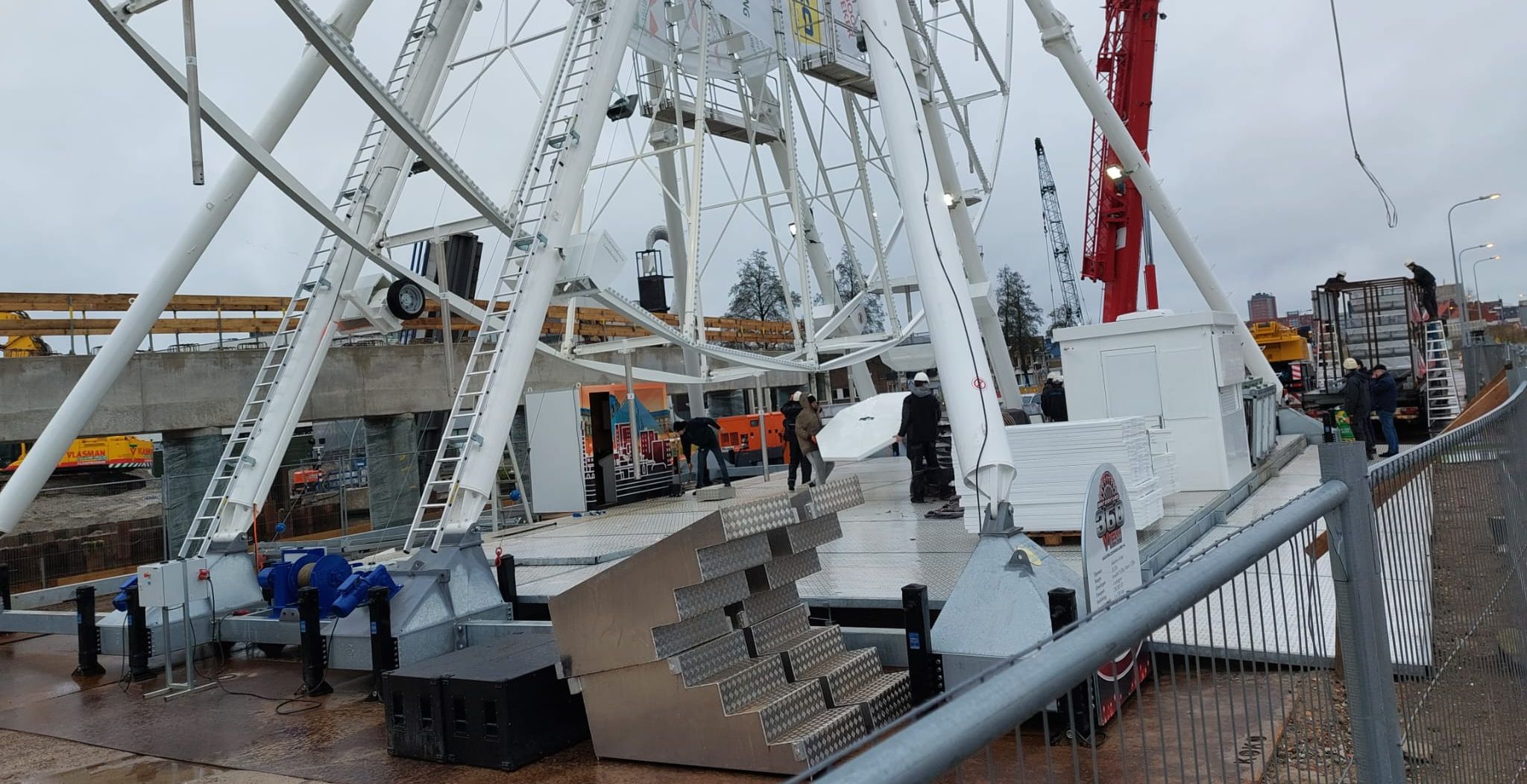 Het reuzenrad wordt dinsdag in delen afgebroken. “Als een soort bouwpakket”, vertelt woordvoerder Kirsten Smit namens Aanpak Ring-Zuid. “Alles wordt nu klaargezet voor vertrek, dus helemaal weg is het reuzenrad nog niet. Maar het rad komt na vandaag in ieder geval niet meer boven de ringweg uit.”