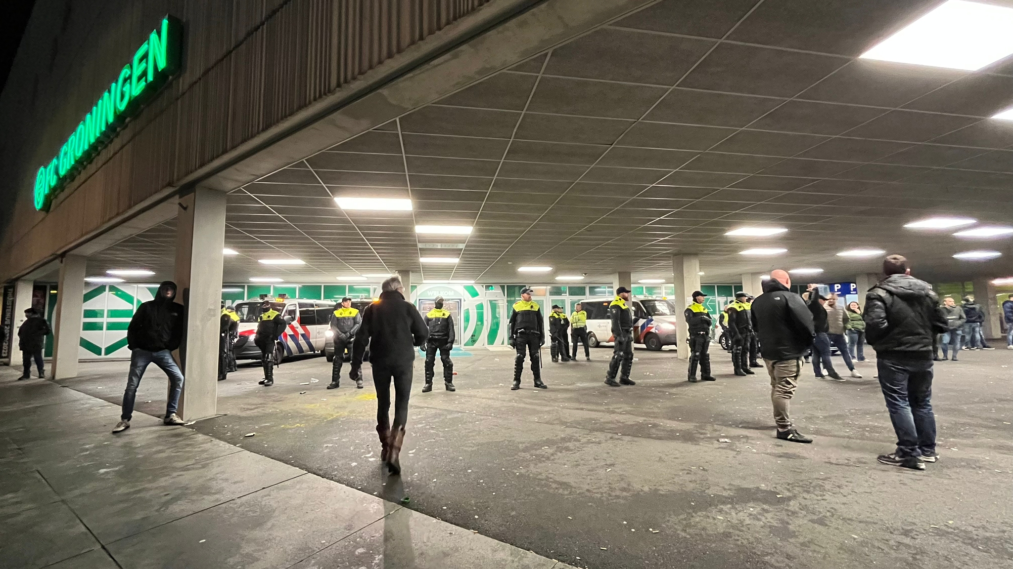 Volgens het Dagblad van het Noorden had het personeel al ruim voor het laatste fluitsignaal de deuren van de hoofdingang afgesloten. Na het met 2-3 verloren bekerduel tegen de amateurs van Spakenburg kwam een peloton ME’ers in actie, evenals een aantal agenten te paard.