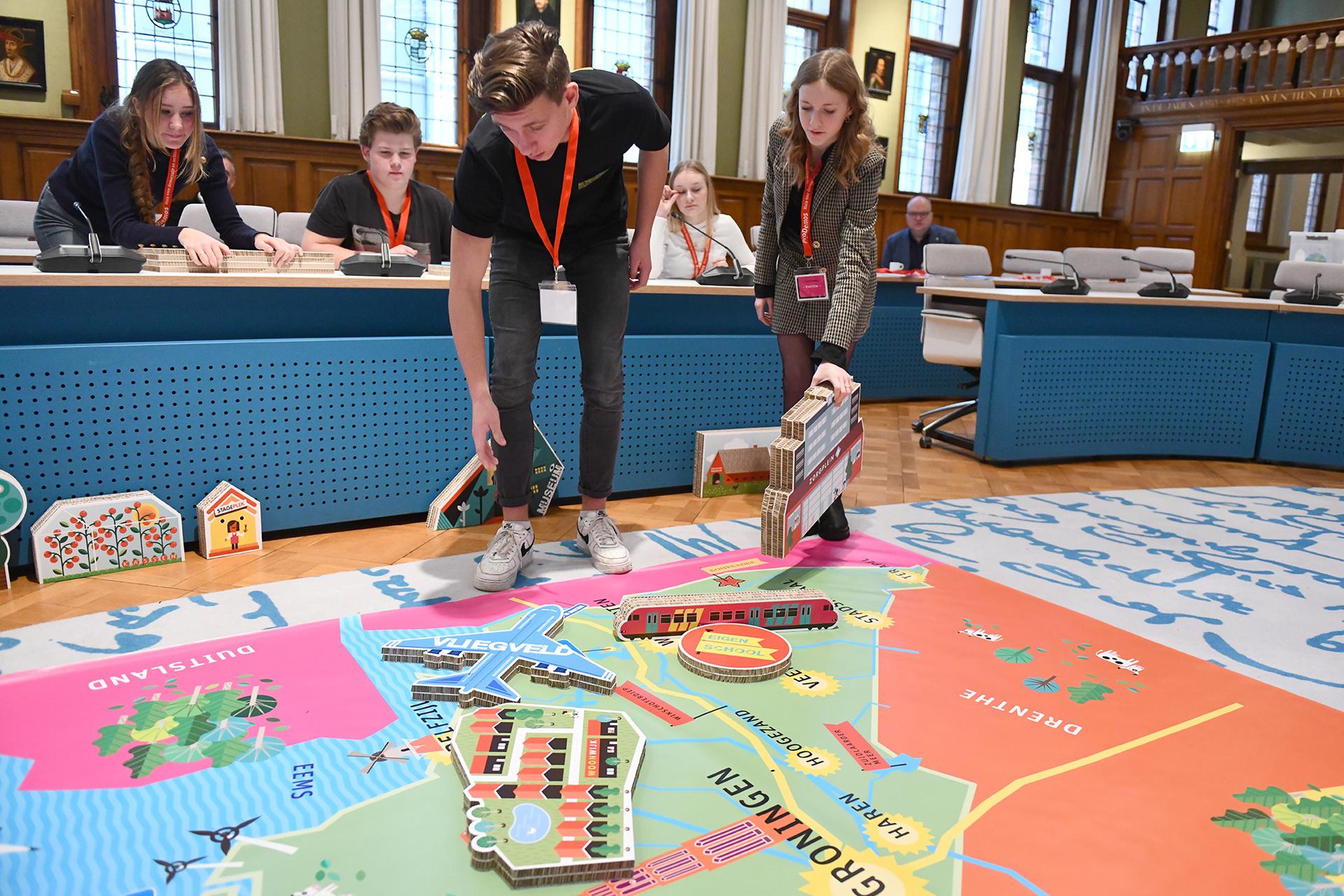 Leerlingen van het Dollard College uit Oude Pekela hadden woensdag de eer om als eerste kennis te maken met het Provinciespel van ProDemos. Het spel werd gespeeld op het Provinciehuis in Stad.