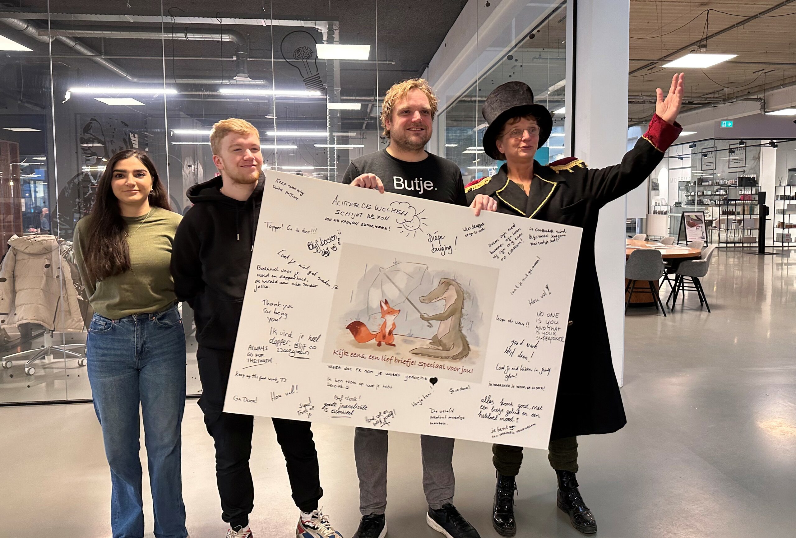 Sikkom-journalist Willem Groeneveld kreeg vrijdag als eerste Groninger een lief briefje. Het briefje met veel lieve boodschappen werd op zijn werk overhandigd.