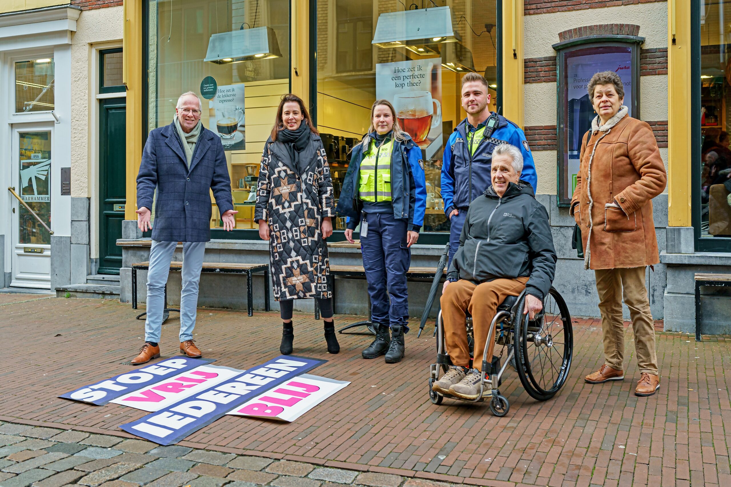 In bijzijn van ondernemers en vertegenwoordigers van bewonersorganisaties gaven de wethouders Mirjam Wijnja en Philip Broeksma deze dinsdag het startschot voor de campagne ‘Stoep vrij, iedereen blij’.