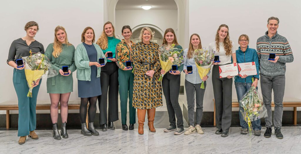 Wethouder Inge Jongman deelde de penningen donderdagmiddag uit aan de sporters, die werden geëerd omdat ze een 1e, 2e of 3e plaats hebben behaald bij Europese of Wereldkampioenschappen, of omdat ze team kampioen zijn geworden in hun sport.