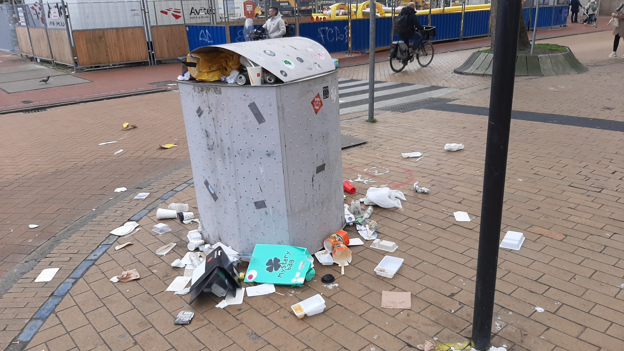 “De binnenstad ligt echt bezaaid met zwerfafval”, vertelt OOG-verslaggever Andor Heij. “De afvalbakken puilen echt uit. Daarnaast zie je dat ondergrondse containers vol zijn en dat mensen het afval er maar naast hebben geplaatst. In de wijken is de situatie nog te overzien. In De Hoogte is er niets aan de hand, en ook in Paddepoel en Vinkhuizen valt het allemaal mee. In Helpman zie je dat er wel meer zwerfvuil aanwezig is.”