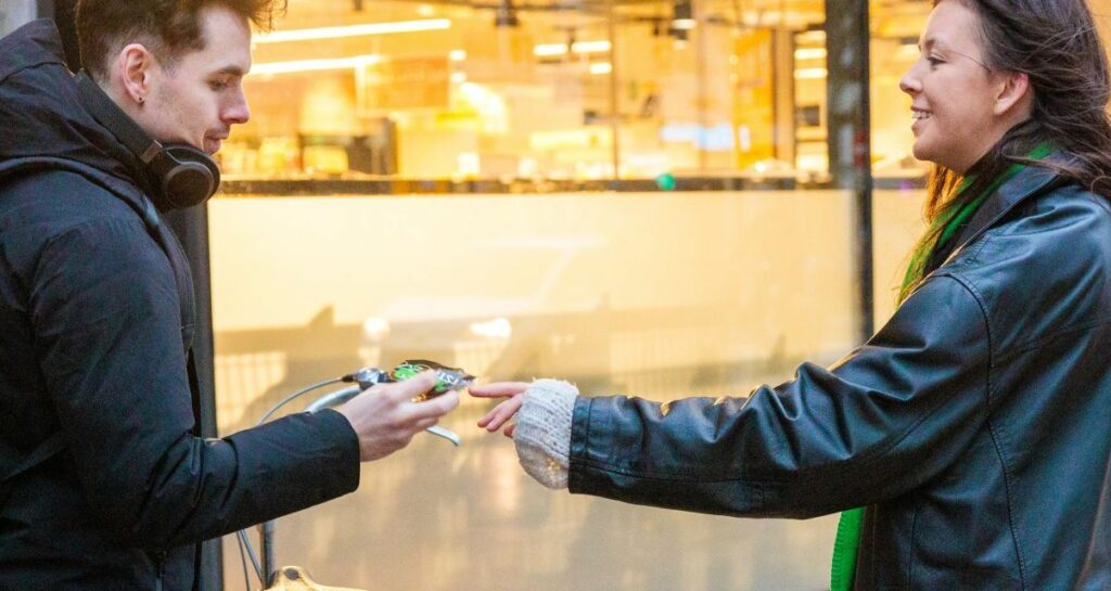Groningen Bereikbaar deelde vrijdagochtend bonbons uit aan parkeerders in fietsenstalling ‘Grote Markt’ aan de Oude Ebbingestraat.