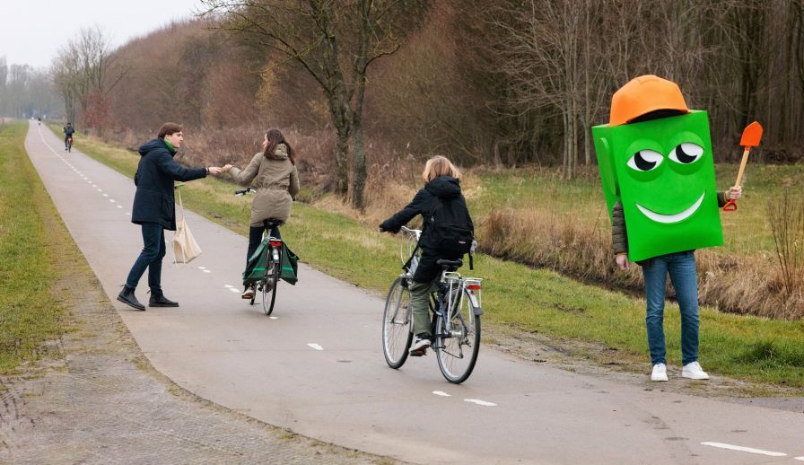 Om de fietsers erop te attenderen dat er binnenkort wordt gewerkt aan de Hontilbrug, een fietsbrug op de doorfietsroute tussen Groningen en Ten Boer, kregen gebruikers donderdagochtend chocoladereepjes uitgereikt door medewerkers van Groningen Bereikbaar.