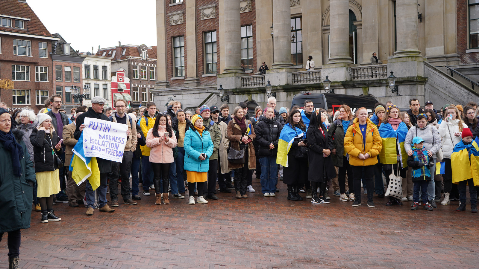 Een honderdtal demonstranten kwam aan het einde van de vrijdagmiddag bijeen op de Grote Markt. De demonstranten waren bij elkaar om samen stil te staan bij de voortdurende oorlog in Oekraïne, die precies een jaar geleden begon.