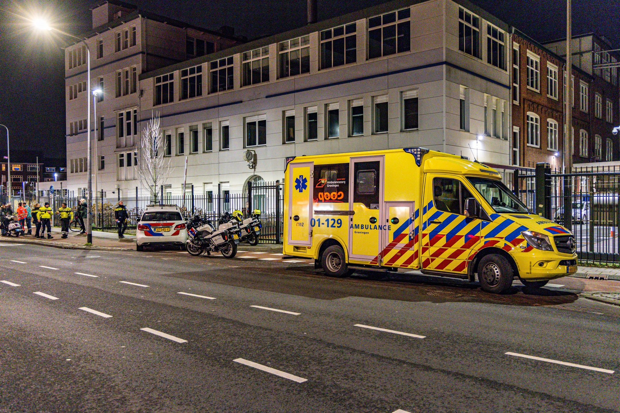 Het ongeluk gebeurde rond 22.40 uur ter hoogte van de Niemeyer-fabriek. “Een fietser en een snorfietser zijn met elkaar in botsing gekomen”, vertelt Ten Cate. “Hoe dit heeft kunnen gebeuren is onbekend. De fietser kwam door het ongeluk ten val en raakte gewond. Ambulanceverpleegkundigen hebben de persoon behandeld.” De fotograaf vertelt dat de fiets bij het ongeluk enige schade heeft opgelopen.