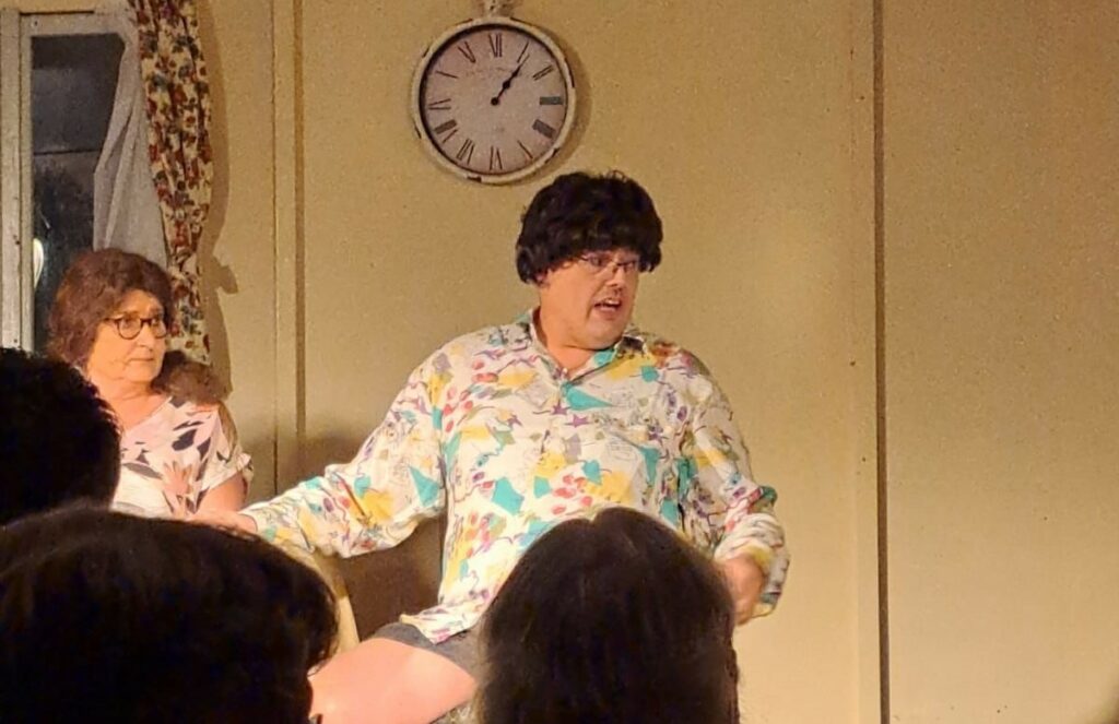 “Wij spelen ‘Vreemde Zaak Dirk Wakker’. Dat is een blijspel geschreven door H. Thole. Je moet je voorstellen dat de voorbereiding op zo’n stuk in de zomer al begint. Een aantal mensen binnen onze vereniging gaan dan stukken doorlezen die volgens hen geschikt zouden zijn om op te voeren en maken daar een rangorde in. Vervolgens komt men bij elkaar, worden de resultaten op tafel gelegd en maakt het bestuur een beslissing. De beslissing dat we dit stuk zouden gaan brengen is in de zomer van 2021 genomen. In de winter zijn we begonnen met repeteren, maar toen kwam er een lockdown waarop we alles hebben moeten cancelen. Dit jaar zijn we dus verder gaan bouwen op het fundament van vorig jaar. Omdat er qua repetities veel was blijven hangen kunnen we dit jaar onze voorstelling ook eerder opvoeren. Meestal vindt het in maart plaats.”