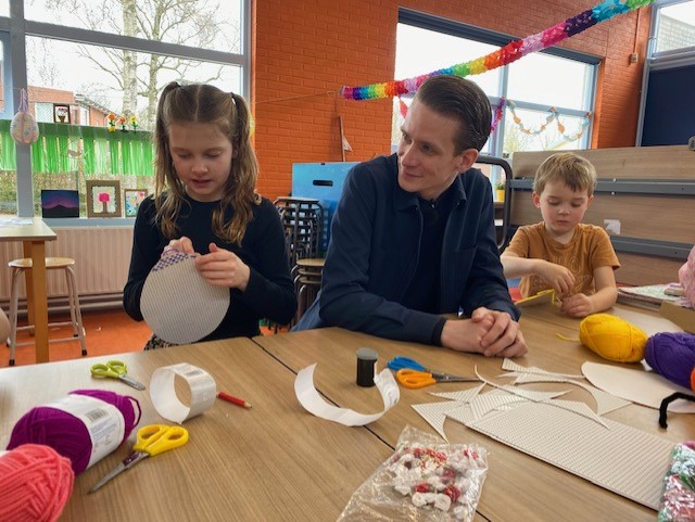 ‘Er is een gigantisch personeelstekort en zeker het tekort aan mannen is echt een probleem. Kijk als man wat je leuk vindt en hoe je dat kan toepassen op het werken met kinderen. Ik heb zelf heel veel met toneel bijvoorbeeld.’ vertelt Kevin. De kinderen uit zijn groep, De Gouden Panter, zijn het met hem eens. ‘Ik vind het leuk dat we een meester hebben. Kevin doet altijd mee aan spelletjes’, vertelt een meisje. Op de vraag of ze meer meesters voor de klas zou willen, antwoordt ze bevestigend. ‘Ja, dat zou ik super leuk vinden.’