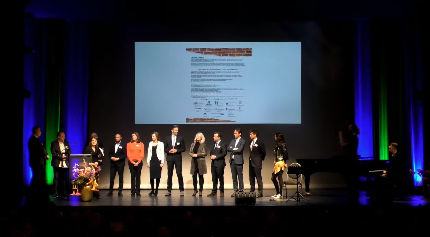 In een bomvol theater Molenberg in Delfzijl hebben woensdagavond Groningse raads- en Statenleden, waterschappen, maatschappelijke organisaties en inwoners een bestuurlijke reactie gegeven op het rapport van de parlementaire enquêtecommissie. Daarbij is de eis op tafel gelegd dat Groningers recht wordt gedaan.