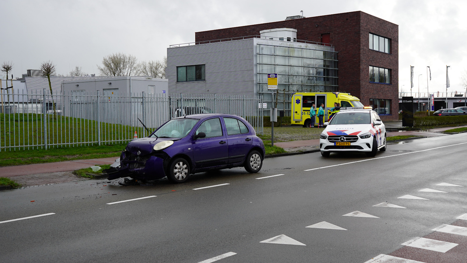 Er raakte één persoon gewond, die in de ambulance werd behandeld. De schade aan beide voertuigen is groot.