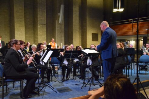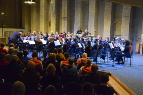Harmonie’67 bracht stukken ten gehore waarmee ze in april op het ONHK te horen zijn. De harmonie stond onder leiding van dirigent Jan Wijenberg. Foto: Rudi Heckman en Hillie Wijenberg / Gruno’s Postharmonie