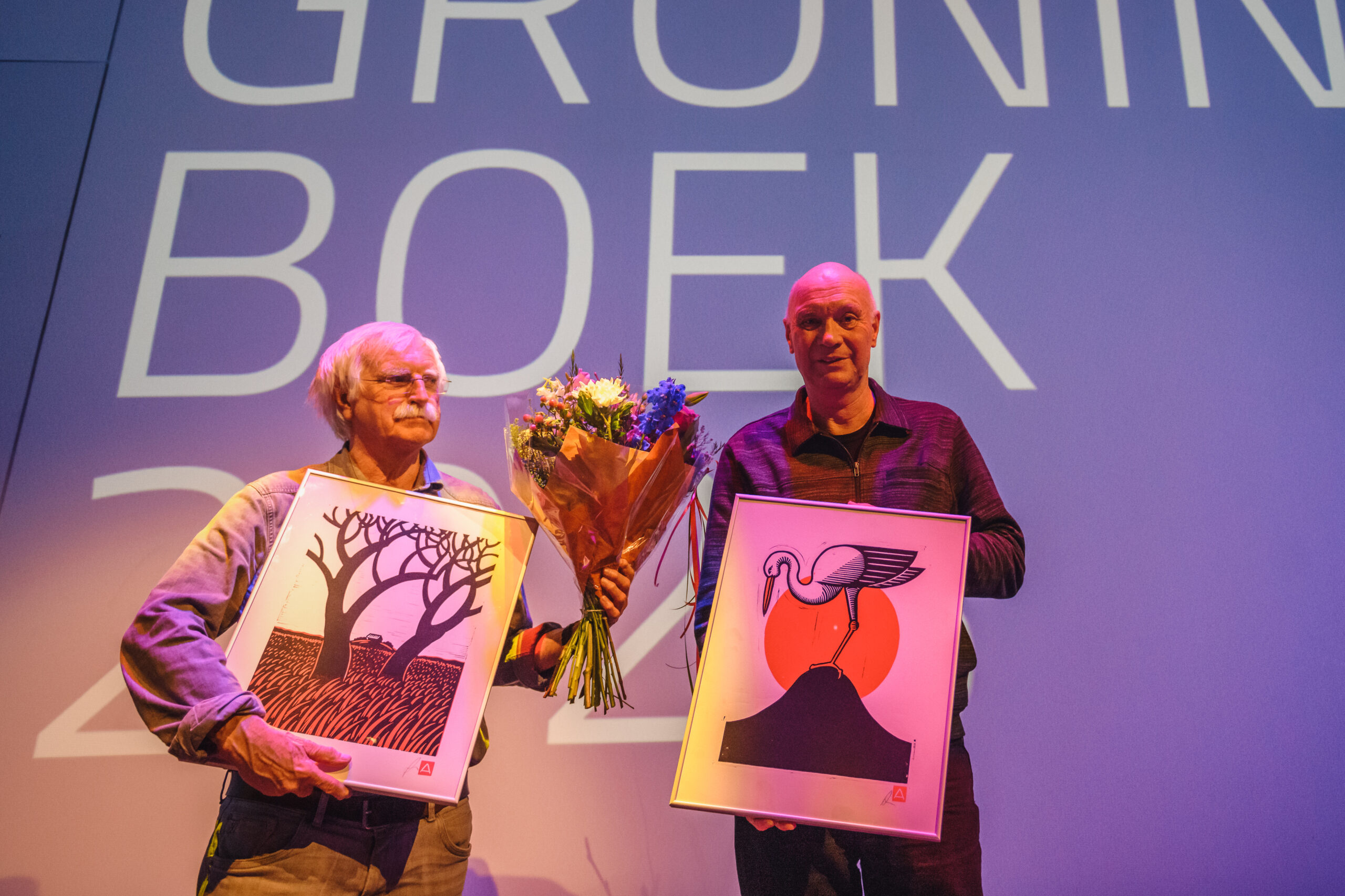 De boeken ‘Het lied van ooievaar en dromedaris’ van Anjet Daanje en ‘Wierdenlandschap’ van Ben Westerink zijn zaterdagavond uitgeroepen tot Beste Groninger Boeken van 2023. De prijzen werden uitgereikt in Forum Groningen.