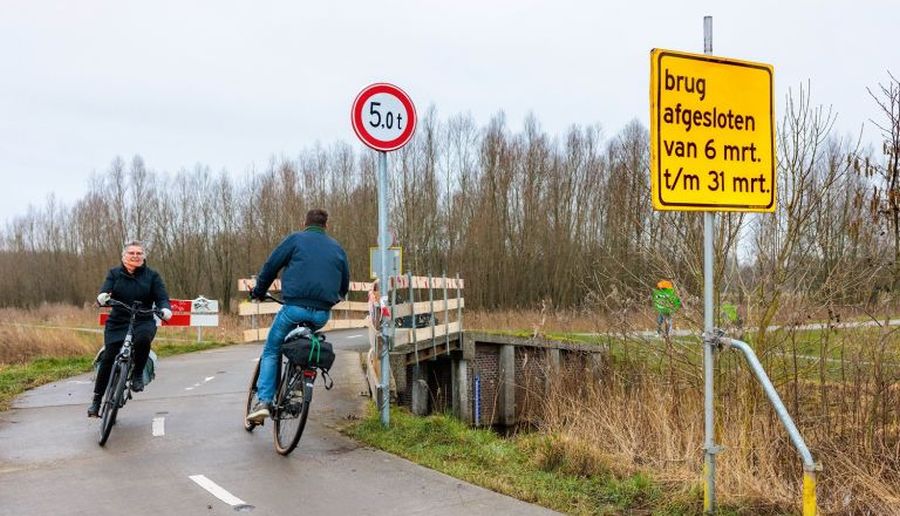 Fietsers worden omgeleid via de Rijksweg. Vlak voor de vrijdagavond van 31 maart gaat de brug weer open.