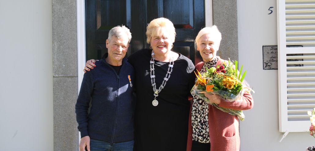 Burgemeester Ineke van Gent reikt vrijdagmiddag, namens ambtgenoot Koen Schuiling, een koninklijke onderscheiding uit aan de in Groningen woonachtige Theo Grömmel.