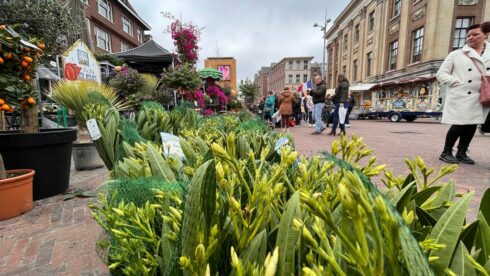 In de loop van de ochtend werd het droog en was het al flink druk tussen de bloemen en planten in het centrum van Groningen. En in de loop van de middag gaat ook de zon doorbreken, wat het vertoeven in de binnenstad nog aangenamer maakt.
