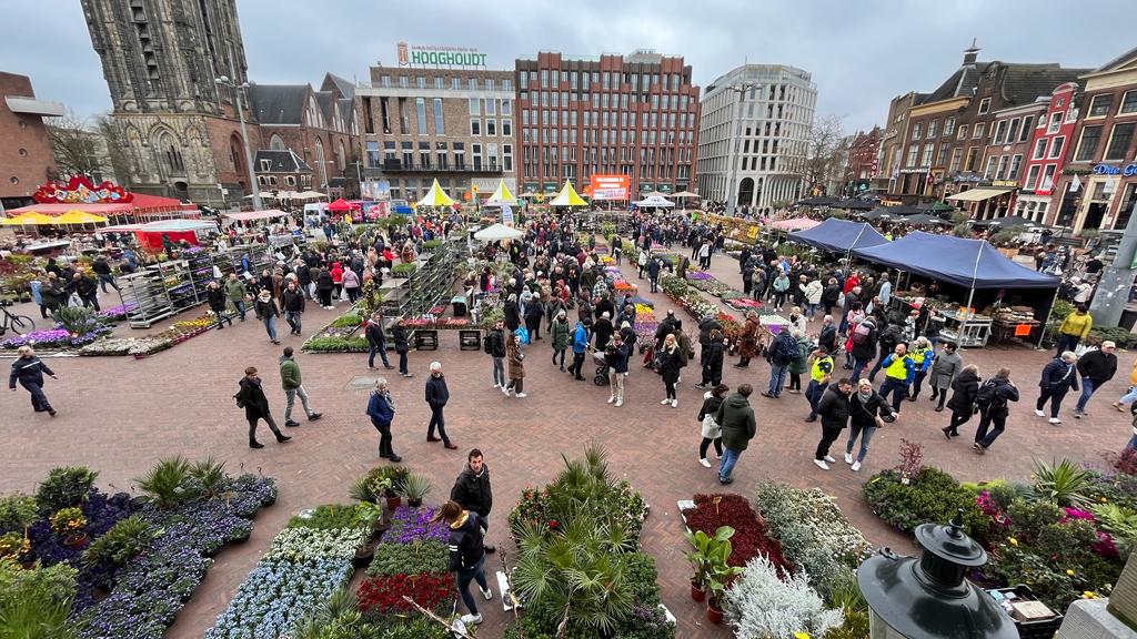 In de loop van de ochtend werd het droog en was het al flink druk tussen de bloemen en planten in het centrum van Groningen. En in de loop van de middag gaat ook de zon doorbreken, wat het vertoeven in de binnenstad nog aangenamer maakt.