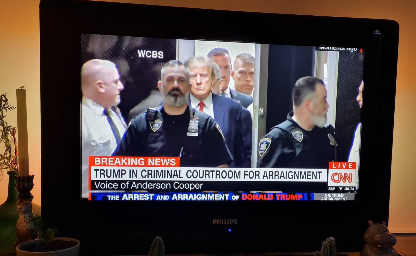 In de rechtbank in New York is dinsdagavond voormalig president Donald Trump formeel aangehouden. De rechtszaak wordt door Amerikanen in Groningen op de voet gevolgd.