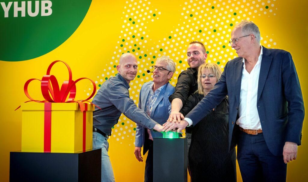 Met een druk op de knop openden vertegenwoordigers, klanten en wethouder Philip Broeksma donderdagmiddag officieel de nieuwe CityHub van pakketvervoerder DHL aan de Osloweg.