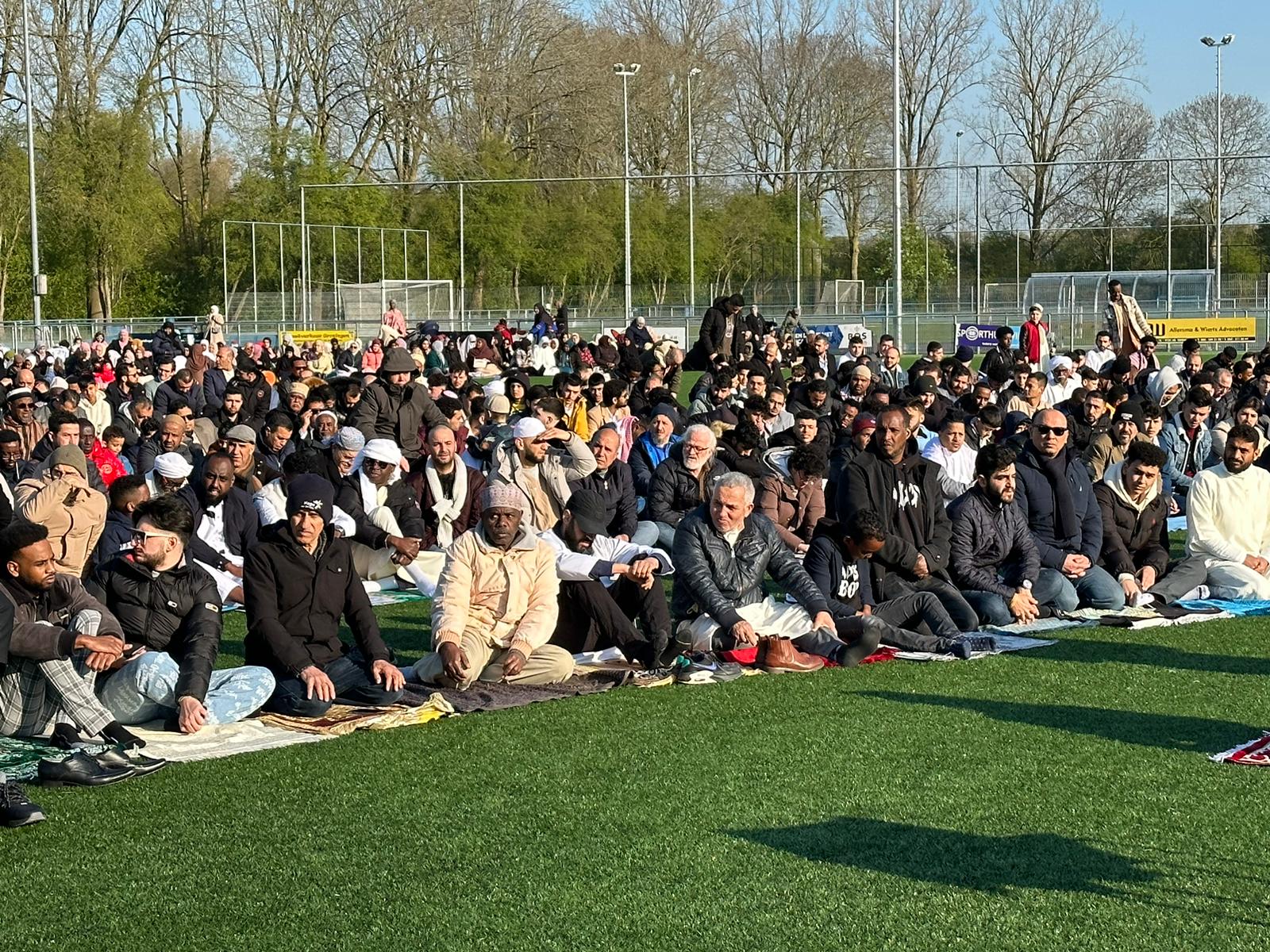 “Bij het Eid-gebed waren bijna vierhonderd mensen aanwezig”, vertelt een woordvoerder van moskee Al-Rahma aan de Oliemuldersweg. “Dat is ook de reden waarom we dit gebed op het sportpark laten plaatsvinden. Er komen zoveel mensen op af dat er in ons eigen gebouw te weinig ruimte is.” De woordvoerder noemt het een belangrijk feest. “Het is het einde van de ramadan. En eigenlijk is het wel leuk om te vertellen want vaak is het niet precies duidelijk wanneer we het Suikerfeest kunnen vieren. De ramadan is de negende maand van onze Islamitische maankalender. De volgende maand, en dus het einde van de ramadan, vindt plaats op de dag wanneer de nieuwe maan zichtbaar wordt. Hierbij is de waarneming in Mekka vaak leidend.”