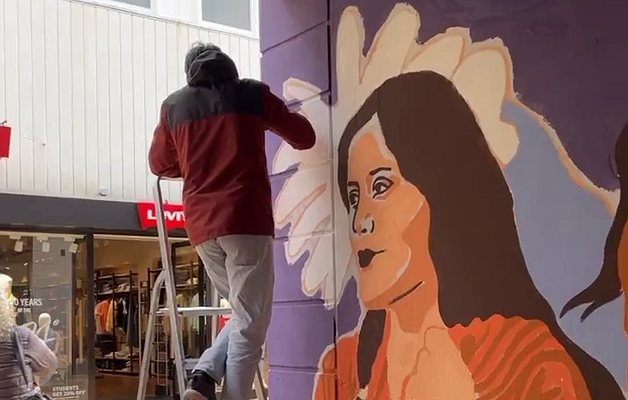 Kunstenaarsduo VAAF (Jonna Bo Lammers en Lotte Masker) en een aantal vrijwilligers zette de grote lading graffiti in het steegje om in een kunstwerk over de protesten in Iran. In het kunstwerk zijn portretten te zien van demonstranten, die het leven lieten tijdens de anti-overheidsprotesten die sinds september vorig jaar gaande zijn in het land. Het kunstwerk is een gratis project van VAAF, in samenwerking met een Iraanse inwoonster van Groningen.