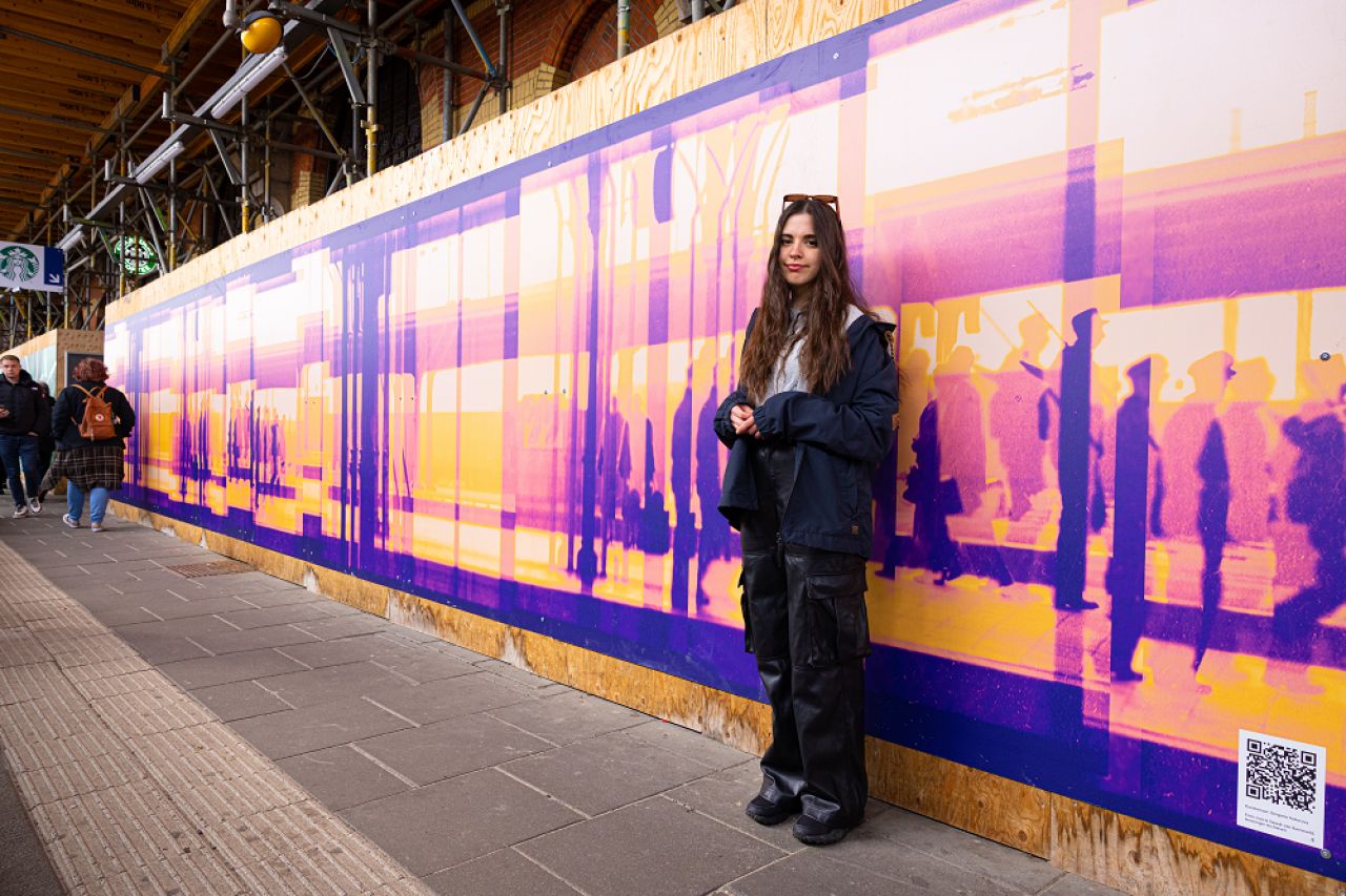 Op de bouwschuttingen op het Hoofdstation schitteren sinds deze week drie nieuwe kunstwerken. De werken hebben een internationaal tintje.