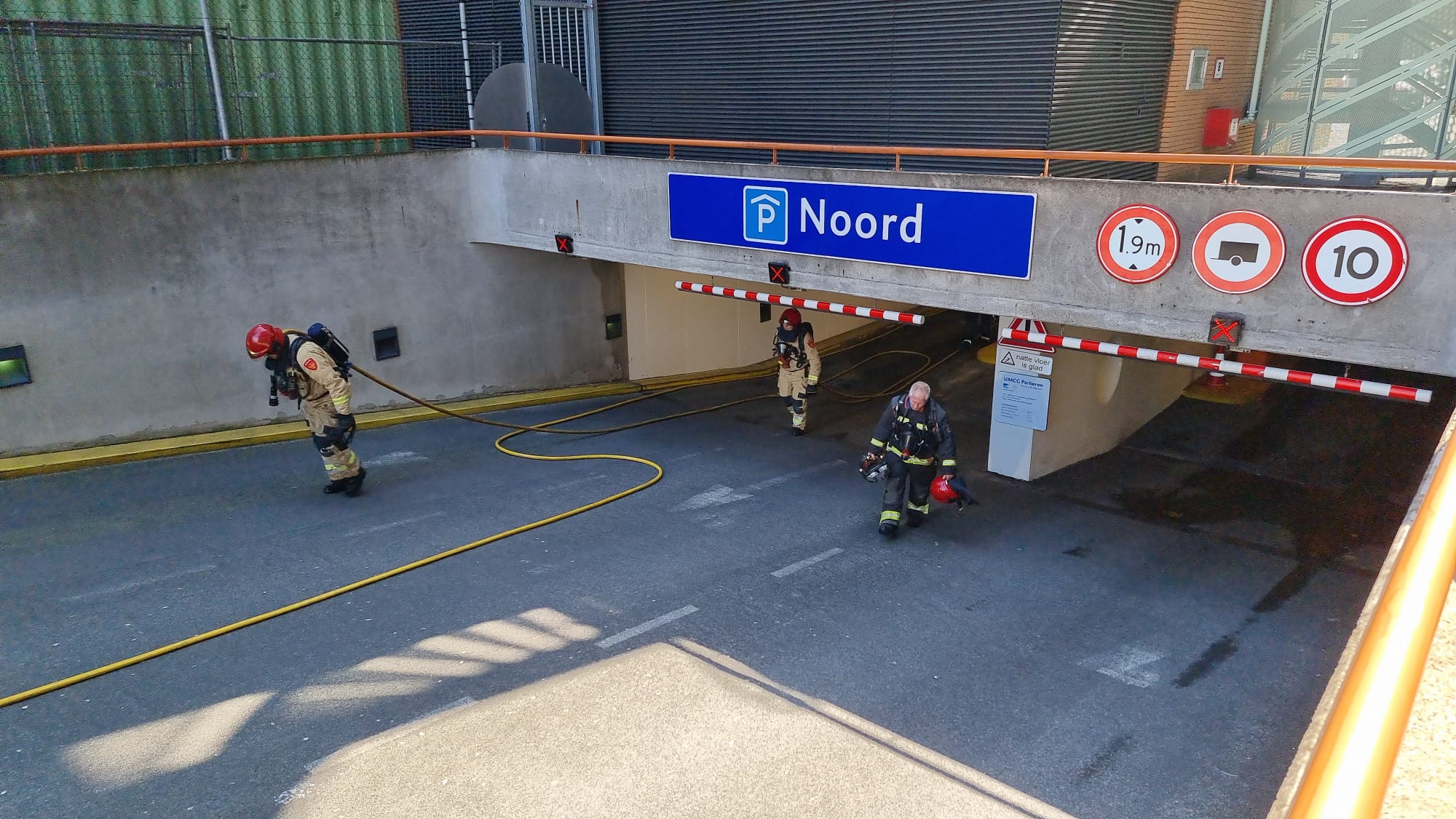 In de parkeergarage ontstond brand in één van de geparkeerde voertuigen. De brandweer wist de brand snel te blussen en te voorkomen dat het vuur zich uitbreidde.