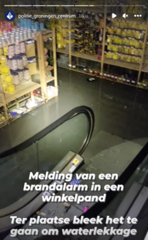 “We hebben hier drie verdiepingen”, vertelt een medewerker. “Twee verdiepingen zijn gewoon voor het publiek geopend. De derde verdieping, de kelder, hebben we afgezet. Daar is de schade nog te groot. Ook kunnen op dit moment de roltrappen en lift niet gebruikt worden.” Vrijdagavond kwam er bij de hulpdiensten een melding binnen van een waterlekkage in de winkel. Uit beelden van de politie blijkt dat in de kelder een flinke laag water staat.