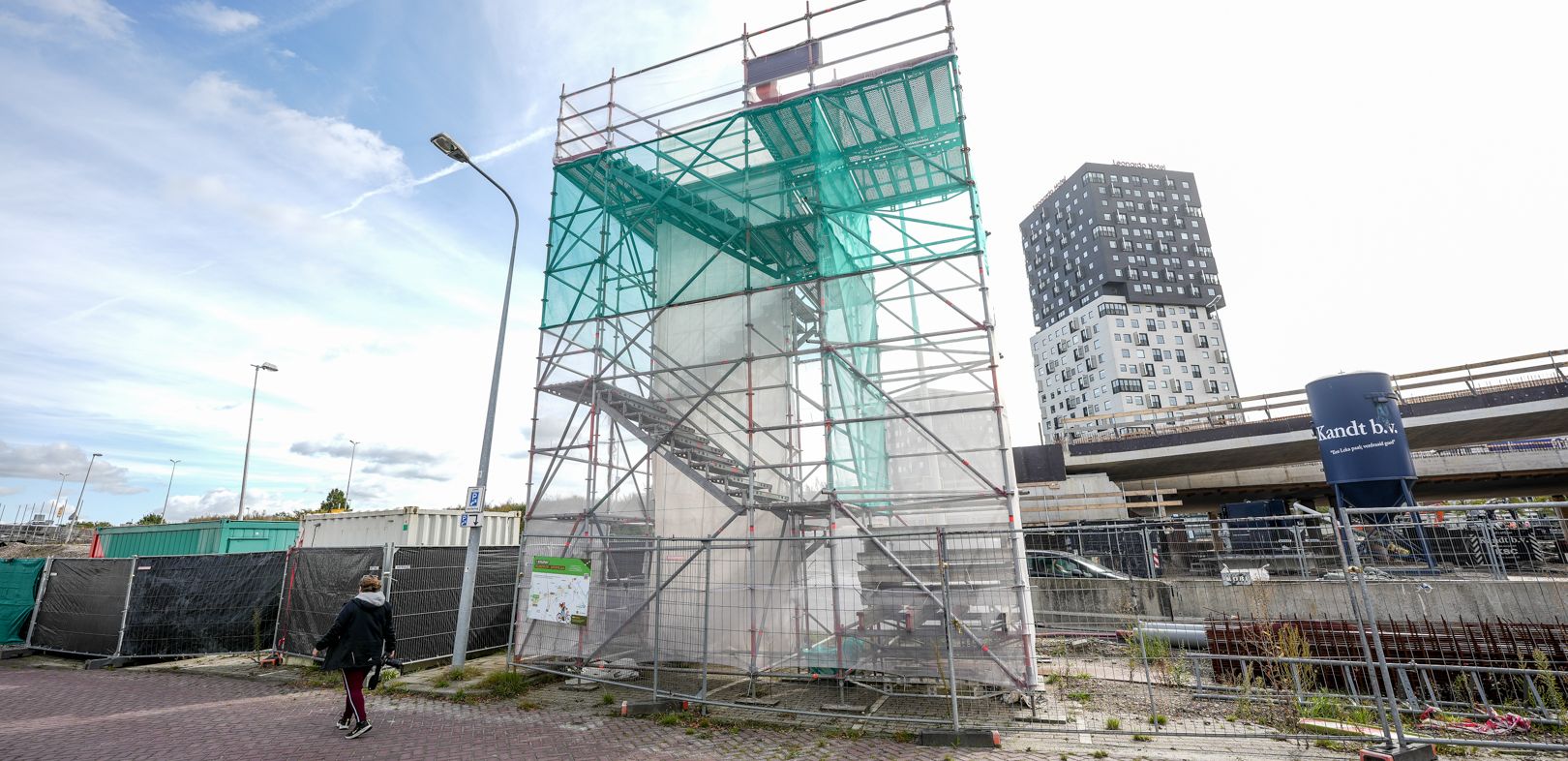 Het uitkijkpunt over de werkzaamheden werd iets meer dan een jaar geleden geopend, samen met de uitkijktoren bij het Julianaplein. Deze toren blijft vooralsnog open totdat de werkzaamheden volgend jaar zijn afgerond.