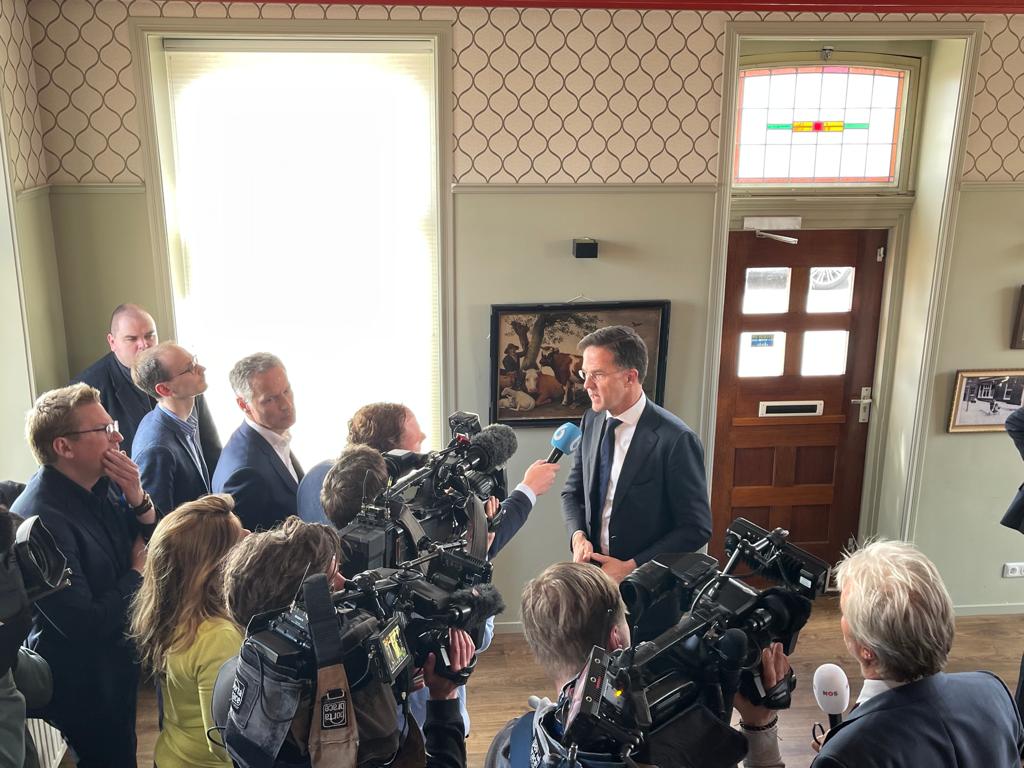 Premier Mark Rutte (VVD) neemt afscheid van burgemeester Koen Schuiling (VVD). Foto: Rieks Oijnhausen