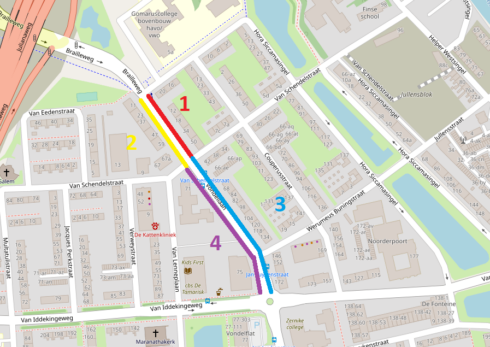 • De aansluiting van de Van Schendelstraat met de Vondellaan aan de westzijde is dicht voor autoverkeer.
