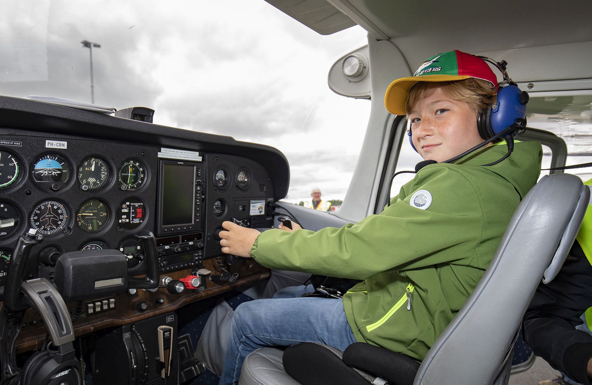 Vijftien piloten waren in Eelde beschikbaar om met de kinderen de lucht in te gaan. Een extra bijzondere ervaring. “Piloot zijn is iets magisch en wij zorgen er met kleine vliegtuigjes voor dat de kinderen een mogelijkheid krijgen om een stukje zelf te vliegen”, zegt Eldering. Dat werkt heel simpel: “het vliegtuig heeft twee stuurtjes. De gewone piloot zit ernaast en zorgt ervoor dat het veilig en rustig, waardoor het kind zelf ook even mag sturen.”