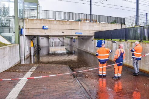 Bij station Haren stroomde een tunneltje vol water. Foto: Mike Weening – Weening Fotografie