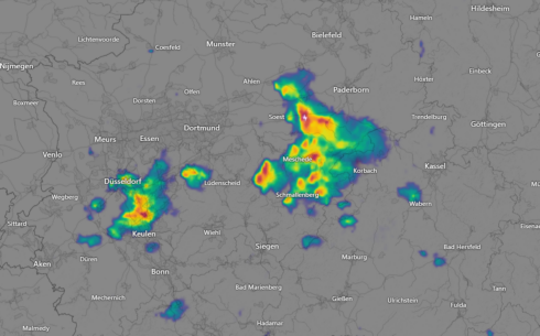 Het KNMI heeft voor Groningen code geel afgekondigd. Naast Groningen geldt deze waarschuwing ook voor een groot deel van de rest van het land. “Boven Duitsland zie je de afgelopen uren meer buien ontstaan. Tussen Dortmund en Erfurt is een flinke bui ontstaan, waar ook onweer in zit. Zo’n bui zou hier in potentie ook kunnen ontstaan.”