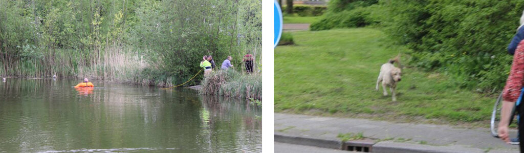 Kort na het invallen van de donderdagavond besloot een ontsnapte hond een duik te nemen in een vijver langs het Kluisgat in Lewenborg. Maar het dier besloot na aankomst van de brandweer dat het zich niet in het water wilde laten vangen.