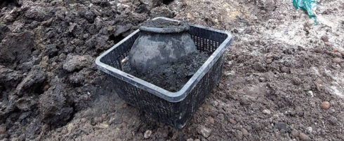 Met een truweel werd maandag een intact kogelpotje uitgegraven, schrijft archeoloog Cuno Koopstra van ingenieursbureau MUG, wat verantwoordelijk is voor de opgraving. Stadarcheoloog Gert Kortekaas denkt dat het dertiende eeuws stukje aardewerk een kleine kookpot is geweest. Opvallend is dat het grotendeels intact is. Meestal komen er alleen fragmenten naar boven.